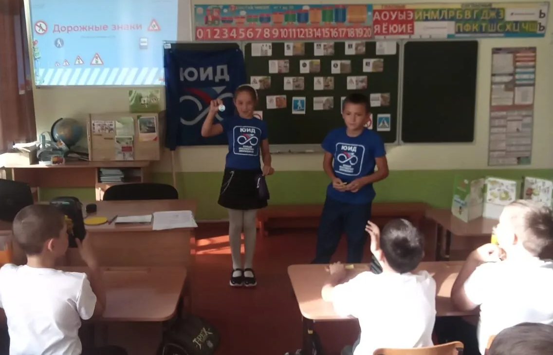 В рамках безопасности дорожного движения отряд ЮИД 4Б класса провел во 2А классе интерактивную игру «Знатоки ПДД». Ребята закрепили знания по правилам дорожного движения. Затем второклассники повторили правила безопасного движения по улицам, поиграли в игры «Пешеход» и «Светофор». Каждый участник игры нарисовал дорожные знаки.